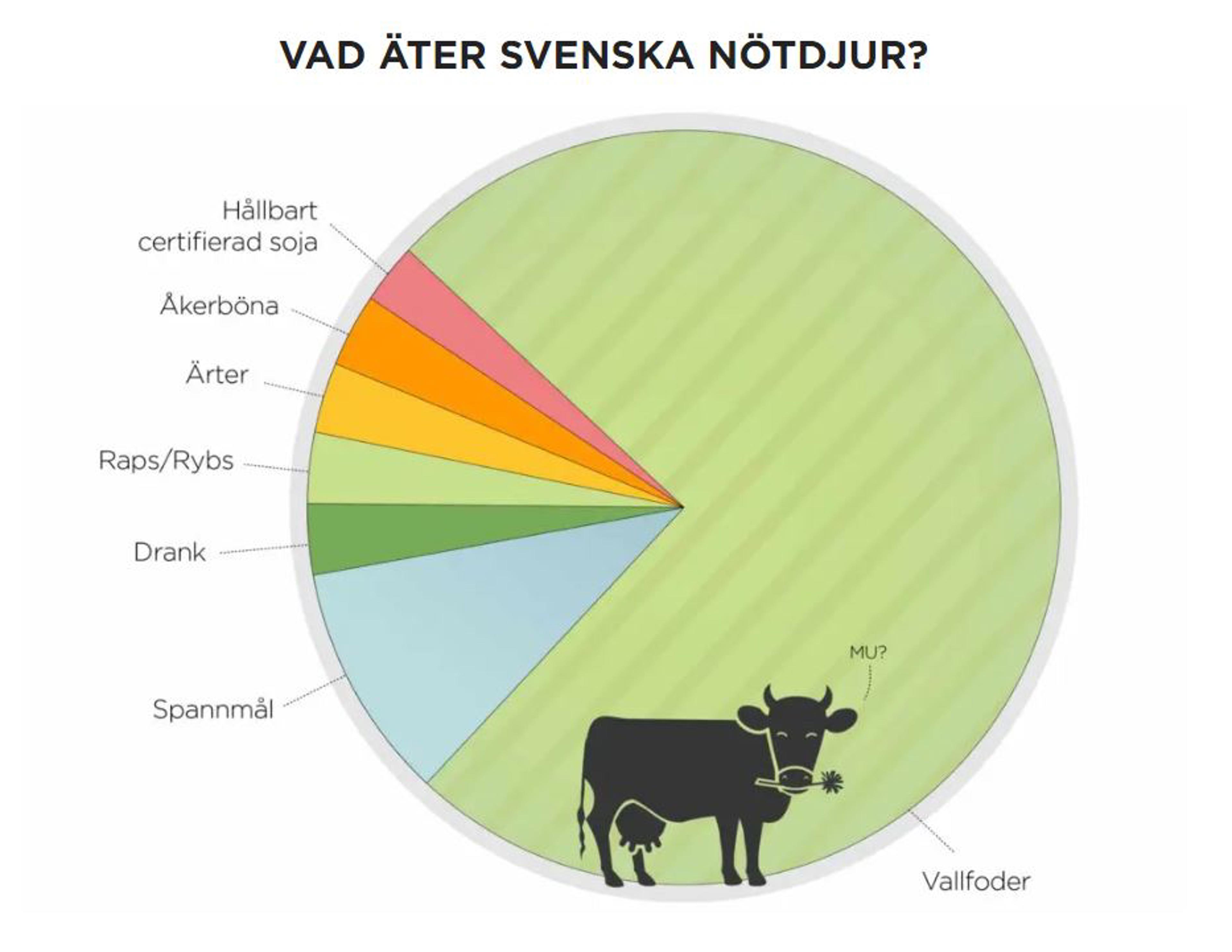 - Svenska nötdjur äter mest gräs och klöver som är viktigt för växtföljden och dessutom fångar koldioxid.